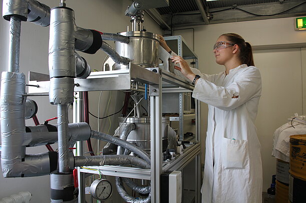 In eigenen Versuchsanlagen in Leipzig im Institut für nichtklassische Chemie (INC) der Universität Leipzig sowie in Kooperation mit unserem Partner werden Untersuchungen zur Bestimmung von Gleichgewichtsdaten, Produktausbeuten und -qualitäten, Auslegungsparametern sowie Tests mit verschiedenen Lösungsmitteln, wie MEK- / Toluolmischungen u. a., durchgeführt. Zudem optimieren wir das Verhältnis Lösungsmittel/Einsatzprodukt sowie die Lösungsmittelzusammensetzung.