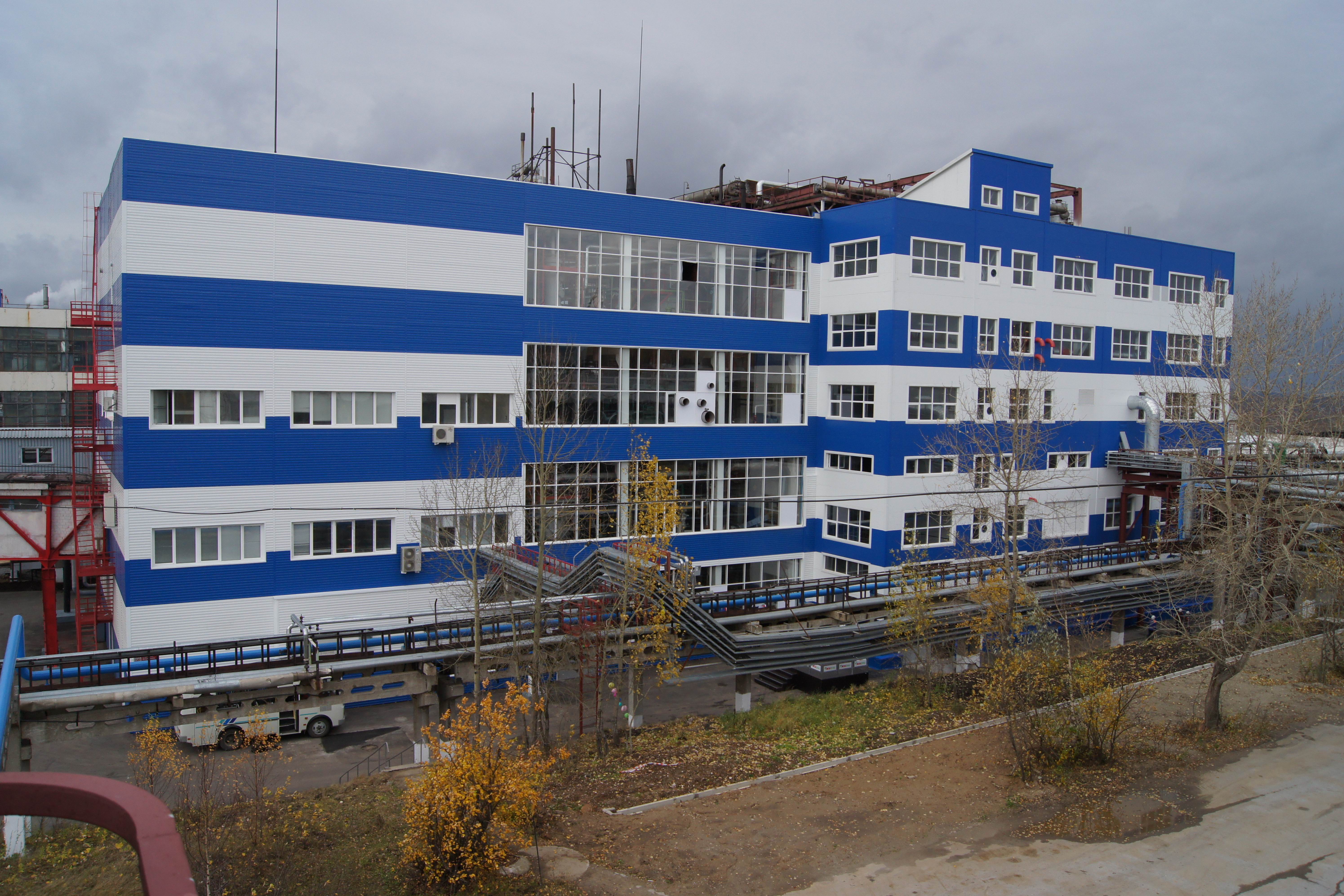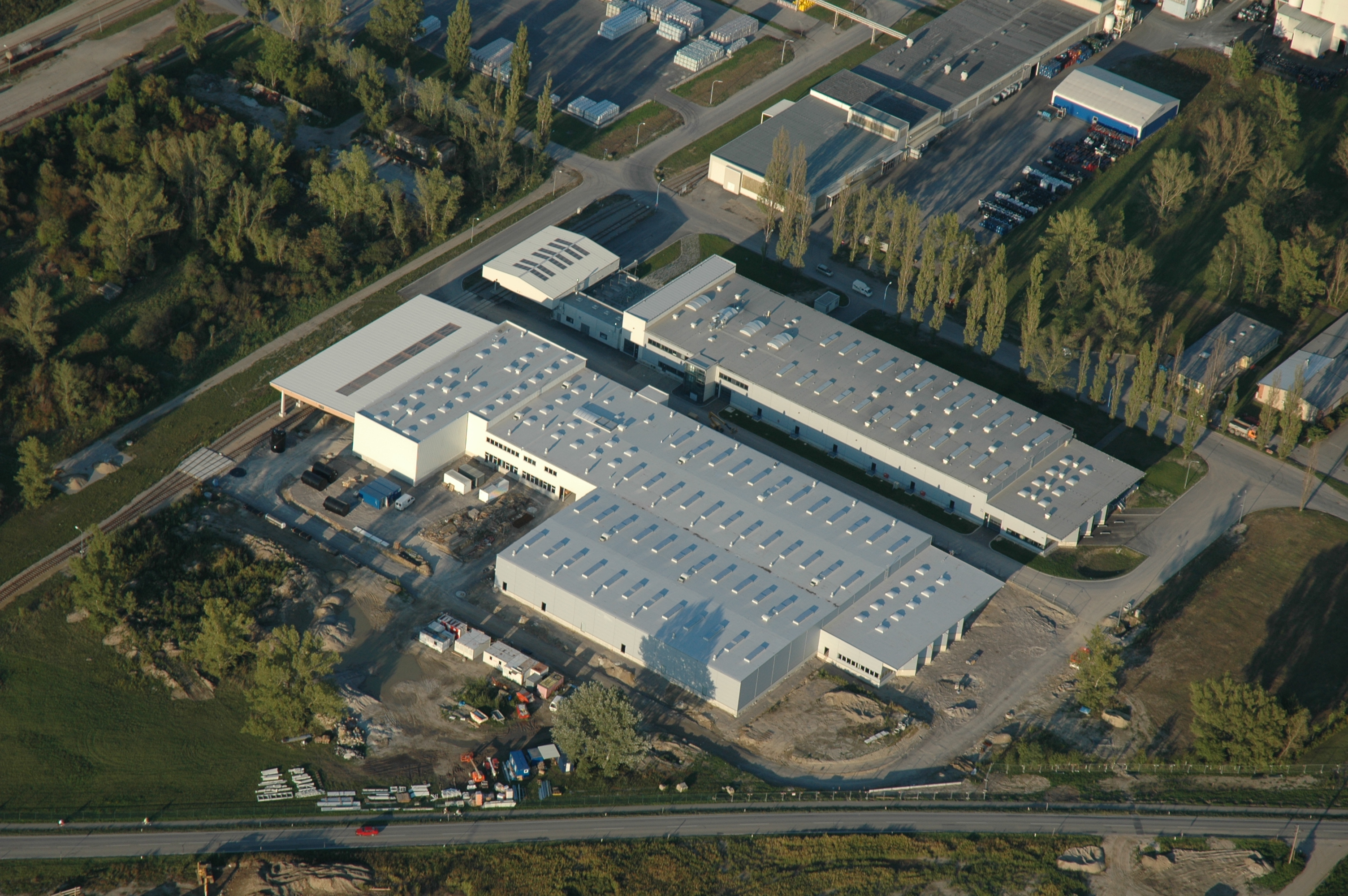 Außenansicht einer Bitumenbahnenproduktionsanlage